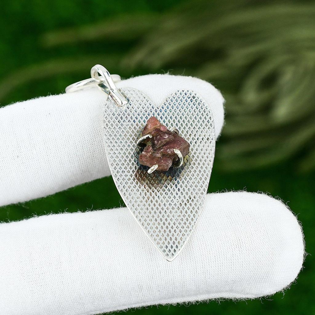 Sterling Silver Natural Pink Tourmaline Rough Anniversary Trendy Pendant Jewelry