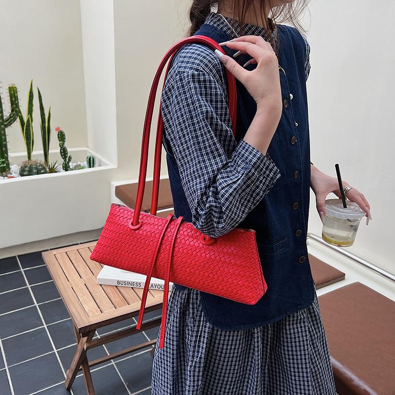 Niche light luxury woven pattern underarm bag women's new simple portable shoulder bag commuter baguette bag