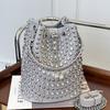 Vintage hollow shoulder women's bag, rivet fashion versatile portable bucket bag, street underarm tote messenger bag