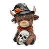 Cow Statue Animal Sculpture Creative Tabletop Ornament Halloween Figurine for Desk Office Bookshelf