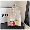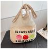 New printed mesh pocket splicing cloth bag, fresh and versatile girl shoulder bag, fashionable large-capacity shopping bag