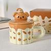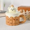 Creamy Style Cute Puppy Cup Ceramic Couple Children Mug with Lid and Spoon Girls High Value Breakfast Cup