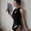 Sex lingerie sexy neck halter cheongsam stage cosplay slit retro