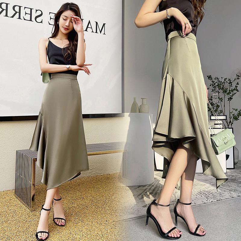 Elevate your summer style with this elegant women's midi skirt, crafted from luxurious satin. The design features a fashion-forward, irregular bodycon fit that beautifully contours your silhouette, while the fishtail hem adds a touch of flair and sophistication. The solid pattern enhances its versatile appeal, making it a chic addition to any wardrobe. Perfect for both casual outings and special occasions, this skirt is a must-have for any fashion enthusiast looking to make a statement.
