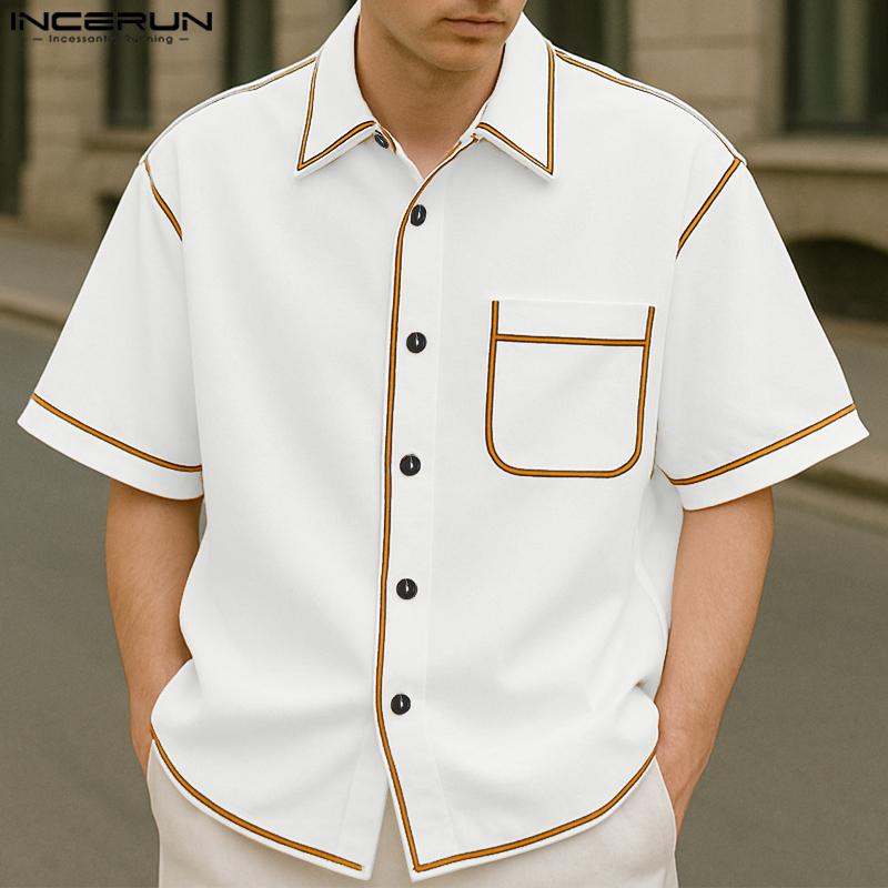 INCERUN Men Lapel Short Sleeve Stitching Buttons Casual Loose Shirts Tops