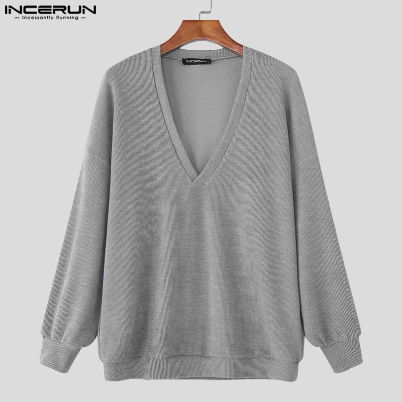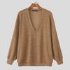 INCERUN Men V Neck Long Sleeve Texture Knitted Casual Pullover Tops