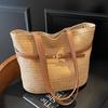 Large-capacity woven bag, new color-matching straw bag bag, shoulder hand basket bag, commuter tote women's bag.