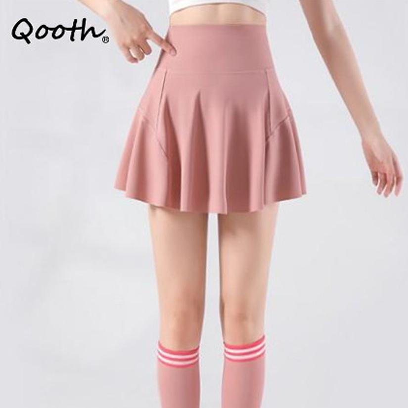 Qooth Vară Alergare Sporturi Mini Fustă Tenis Yoga Talie Elastică Fustă cu Volane Moale Femei QT2628