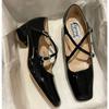 Square Heels Mary Janes Square Toe Med Heels Flats Spring/Autumn Solid Color Women's Shoes Buckle Strap Fashion Ladies Shoes