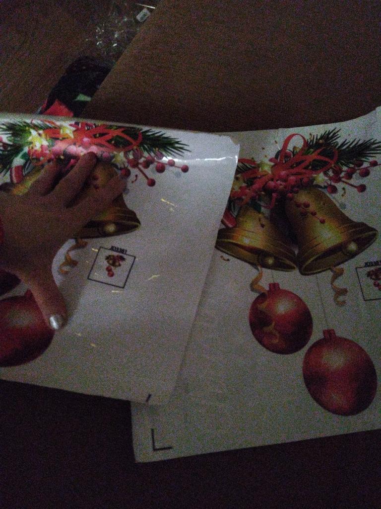 Efectul 3D complex al clopoțeilor, ornamentelor și altele creează o profunzime vizuală captivantă, semănând cu decorațiuni reale de Crăciun.. Prezentând elemente clasice precum clopoței aurii, fructe roșii și globuri colorate, împreună cu fulgi de zăpadă și textul „Crăciun Fericit”, acest autocolant surprinde perfect spiritul sărbătorilor..