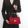 Mom's Wedding Bag, A Red Bride's Bag, Exudes A Sense of Luxury. Middle-aged Happy Grandma's Wedding Handbag