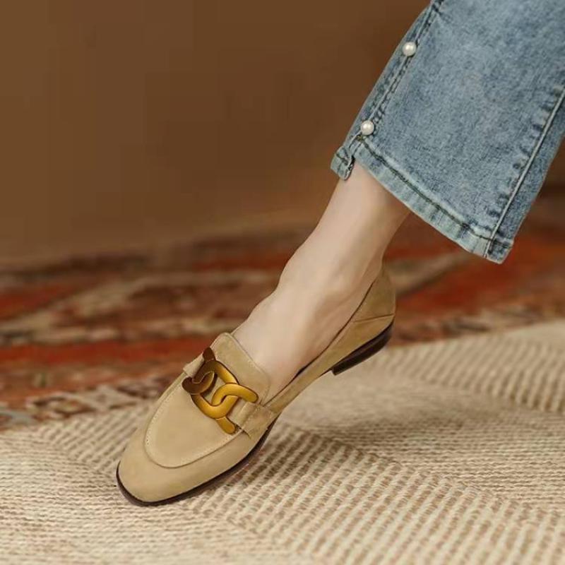 Vintage Slip on Loafers 2025 New Spring Autumn Women Metal Decoration Round Toe Flat Shoes Comfortable Ladies Shoes Female Shoes