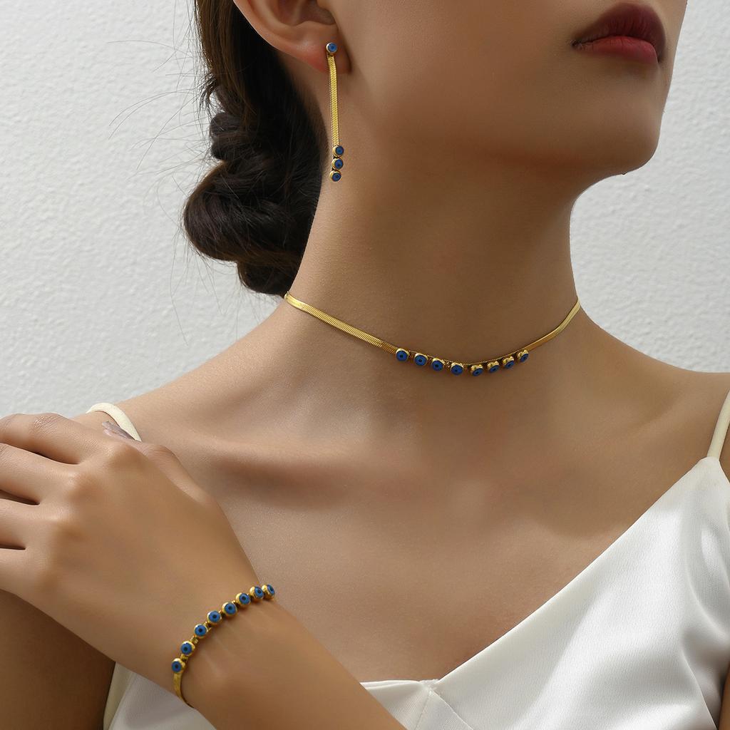 Simple and high-end retro bracelet, stud earrings, necklace set, versatile oil drip design, collarbone chain jewelry, fashionable
