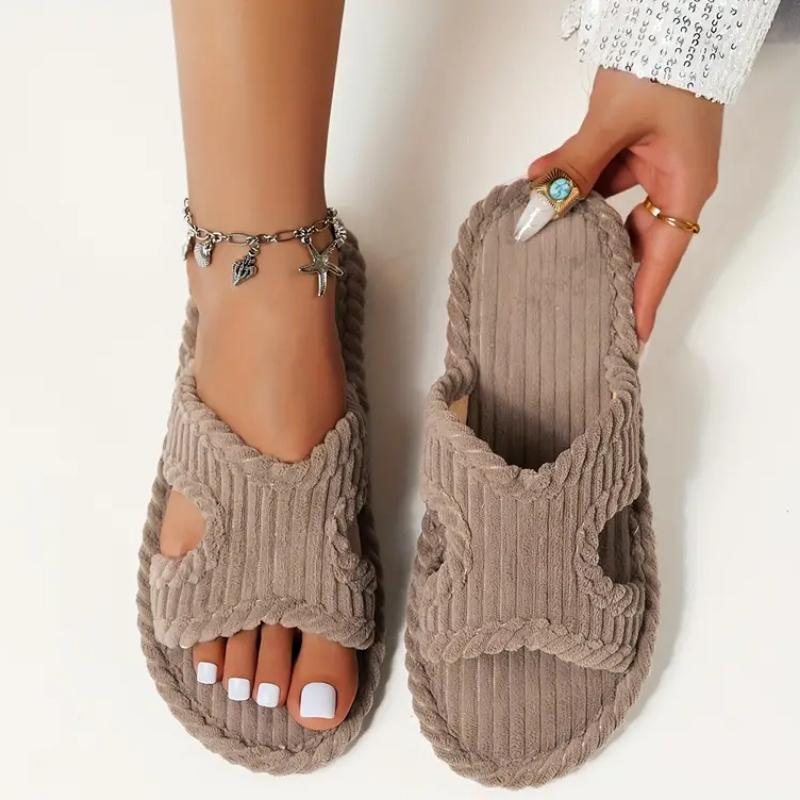 Papuci eleganți cu dungi pentru femei - Material moale, confortabil cu talpă de cauciuc pentru toate anotimpurile