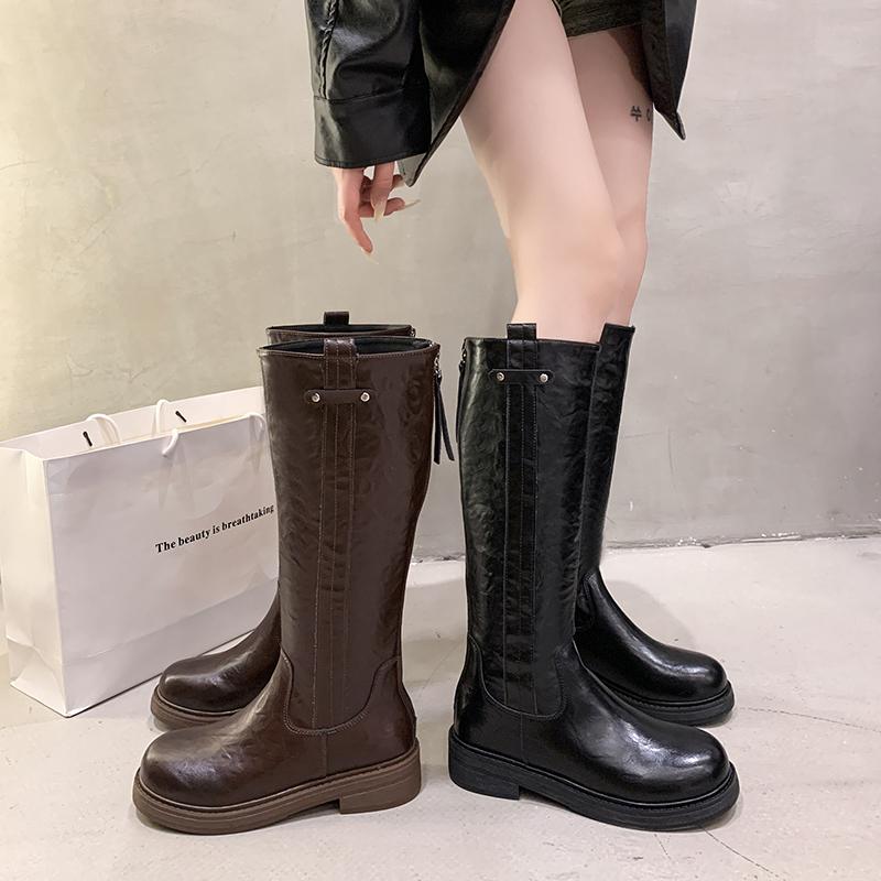 Cizme de damă până la genunchi Primăvară / Toamnă cu talpă groasă, cu toc înalt, cu fermoar lateral, cizme de cavaler, cu toc pătrat, pantofi de damă, Botas Mujer
