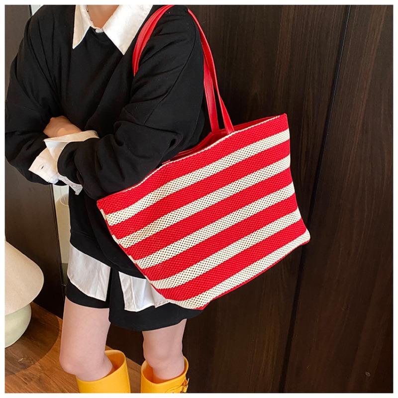 Premium striped tote bag, new large-capacity shoulder women's bag, lazy wind, light vacation bag, shopping bag.