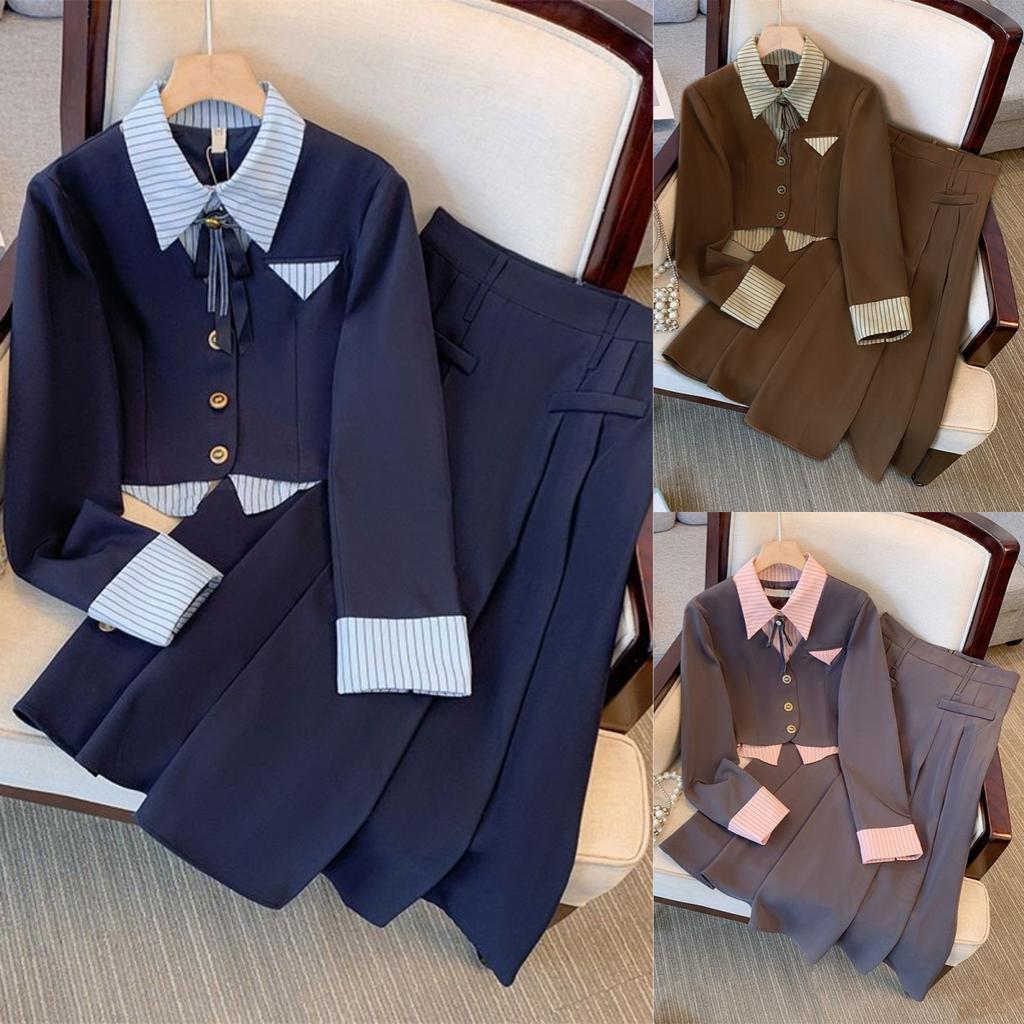 High-end Tea Department Wears A Complete Set of Women's Spring and Autumn Pleated Skirt, College Style Suit, Long Skirt.
