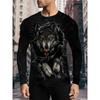 2025 3D Wolf Pack Print Men's Long-sleeved T-shirt Street Style Men's Warm Top For Autumn And Winter Daily Casual Men's Shirt