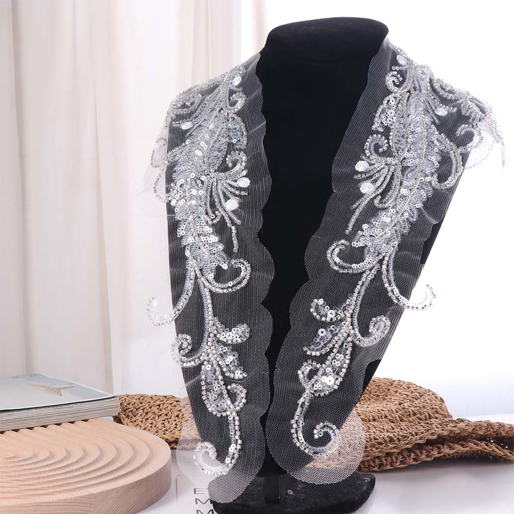 Elegant Beaded Sequin Patch Lace Trim Embroidery Sewing Patch Sew on Patches Dress Decoration
