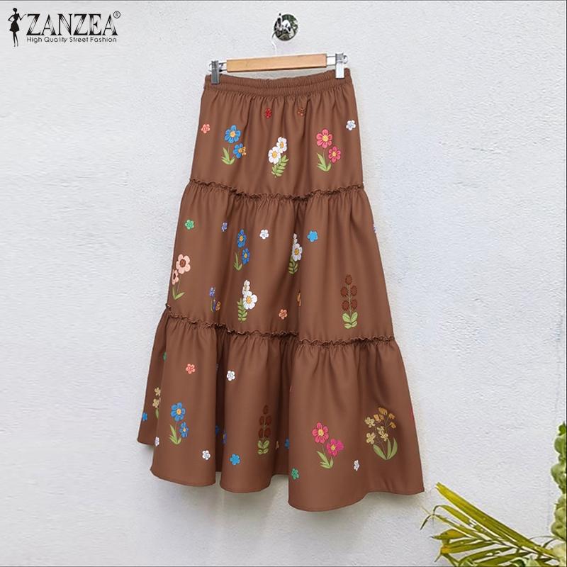 ZANZEA Women Casual Elastic Waist Loose Summer Floral Long Skirts