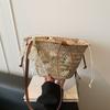 Summer straw bucket bag new women's silk scarf bow flower seaside vacation shoulder bag