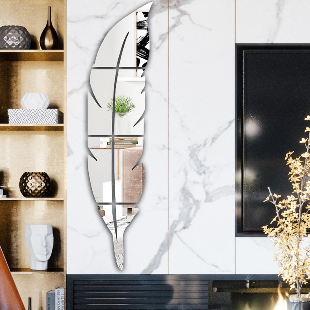 Oglindă Mare cu Pene Artă Autocolant de Perete Detașabil pentru Decorarea Casei (120*30 cm)