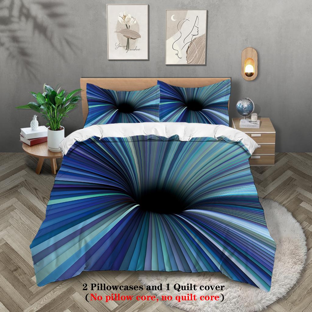 3pcs 3D grid current visual themed pattern printed bedding set, for teenagers and adult's bedroom, Halloween gift