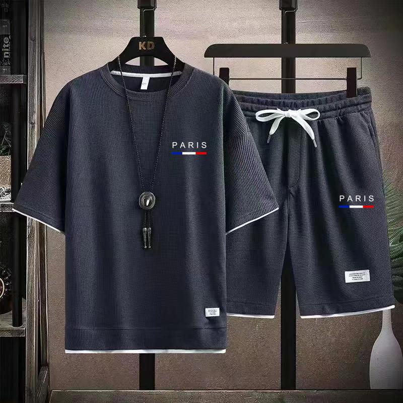 White 2025 Men's Summer New Style Waffle Short Sleeve Shorts Luxury Parsi Printed Set