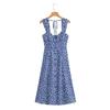 Kaslead New Arrival Women's Clothing Fashion Style French Style Retro Square Collar Floral Tight Waist Slim Looking Elegant Dress