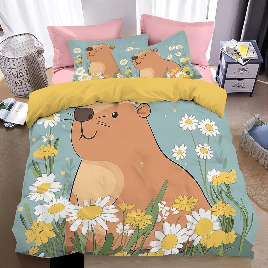 Set de lenjerie de pat Capybara Design 3D Animale drăguțe Set husă de plapumă Microfibră Husă de plapumă pentru Familie, cuplu, copii Față de pernă King