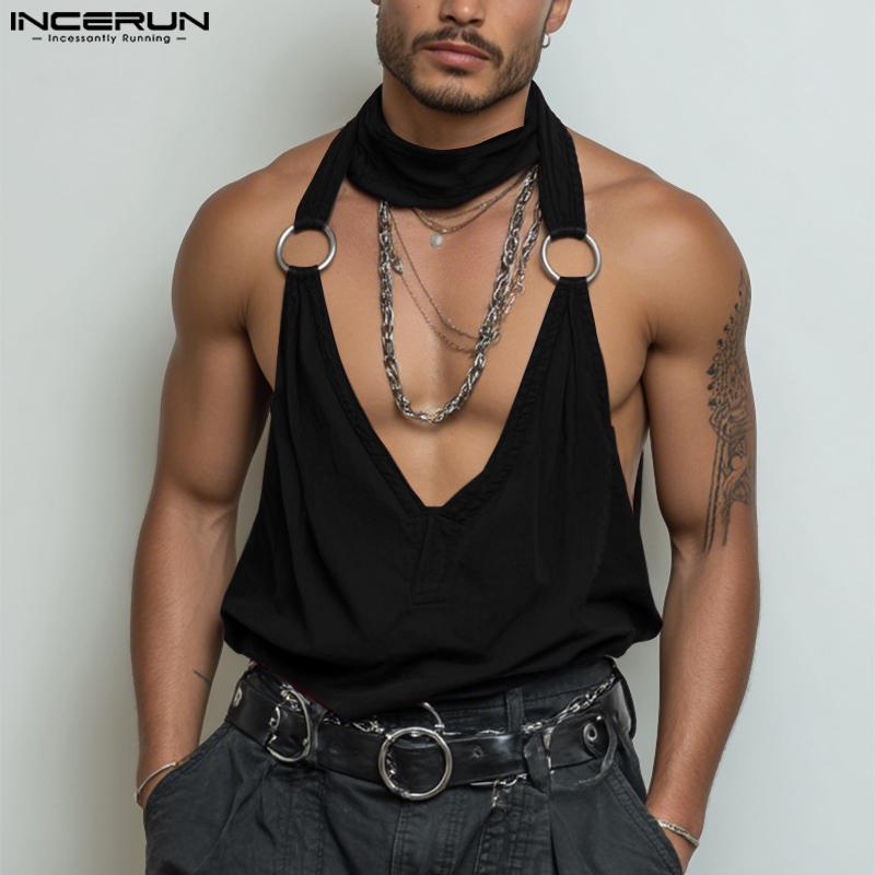 INCERUN Maiouri fără mâneci cu decolteu adânc pentru bărbați, de petrecere, casual, largi, tricouri de corp