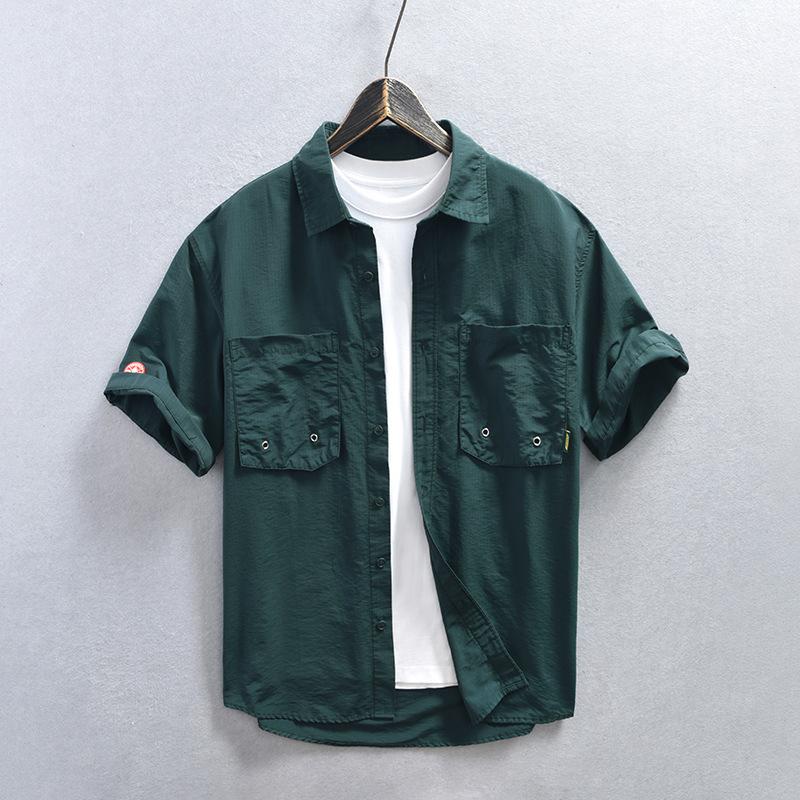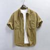 Summer Shirts for Men Japanese Style Cargo Short Sleeve Shirt Lapel Collar Double Pockets Casual Shirt Youth Streetwear Loose Top