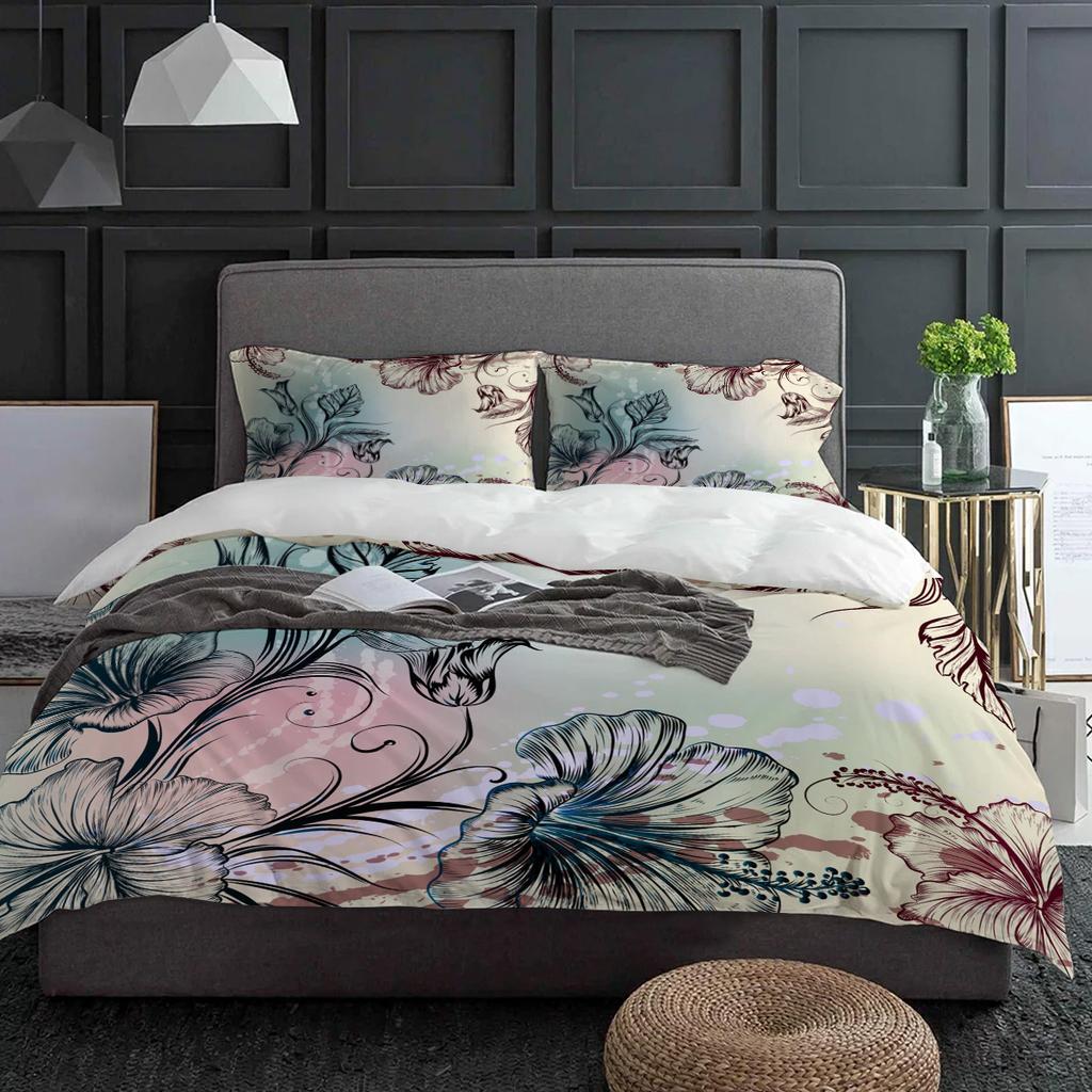 Flowers Hibiscus Retro Style Bedding Set 3pcs Duvet Cover Pillowcase Kids Adult Quilt Cover Double Bed Set Home Textile