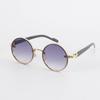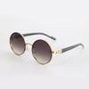 Fashion Design Metal Round Frame SunglassesTrendy Punk Wood Grain Legs Eyeglasses Men UV400 Fishing Cycling Driving Sun Glasses