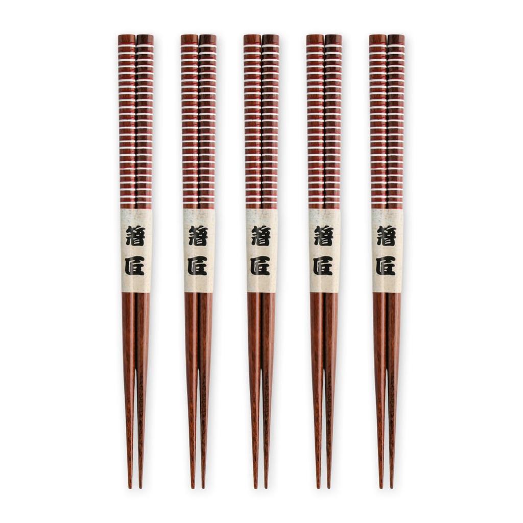 Wooden Red and White Set of Current Model J-kitchens Chopsticks, Stripes, 5, 23cm,
