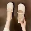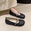 Lovely Flats Female Summer Daily Leather Slip on Round Toe Classic Shoes for Women Solid String Bead Platform Flats Plus Size