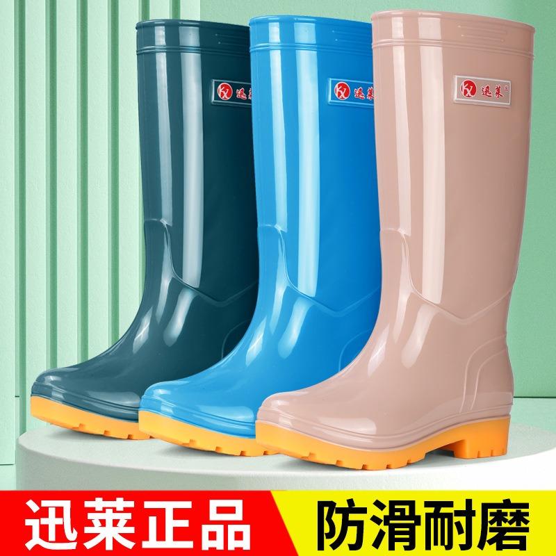 Xunlai two-color tall women's rain boots rainy day rubber shoes kitchen canteen cleaning beef tendon sole non-slip water boots garden water shoes
