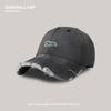 Vintage ripped denim baseball cap children couple versatile showing face small big head circumference wide brim peaked cap tide