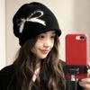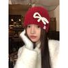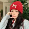 Red bow knitted hat women's versatile face small wool hat outdoor cold-proof and warm bag head cold hat