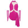 Costum Patinaj Artistic Fete Design Spate Decupat Strassuri Sclipitoare Plasă Transparentă Fustă Asimetrică