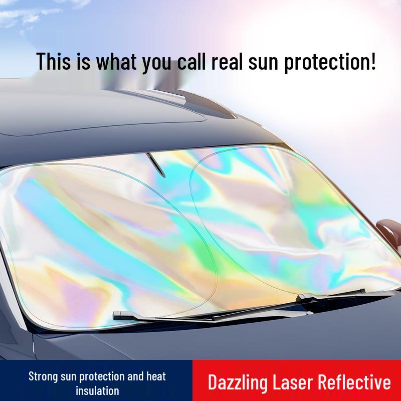 Colorful Laser Car Windshield Sunshade - UV Protection, Heat Insulation, Summer Cooling Visor Umbrella
