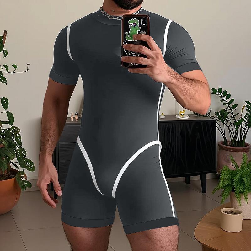 Pijamale cu mânecă scurtă pentru bărbați, cu cusături, mulate, salopete, body-uri, lenjerie de corp