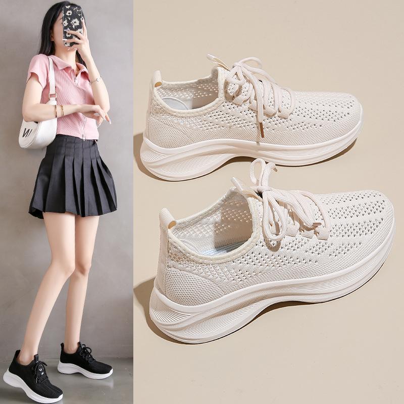Women's Sneakers Lightweight Breathable Running Shoes Soft Soles Non-slip Student Training Shoes Fashion Thick Soled White Shoes