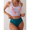 2025 summer new personality print bikini two-piece set European and American seaside vacation conservative triangle split swimsu