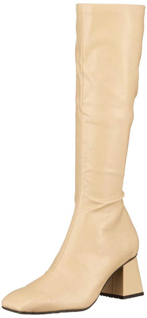 Randa Rain Stretch Moale Cald Vârf Pătrat Mărime Lungă Potrivit pentru Toate Condițiile Meteorologice Cizme Femei Fără Stres, Cizme, Bej, 24.5cm,