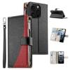 For iPhone 16 Pro Case Zipper Pocket Wallet Color Splicing Leather Flip Phone Cover with Straps