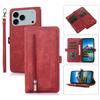 For iPhone 17 Pro Case Zipper Pocket 9 Card Slots PU Leather Phone Cover with Wrist Strap