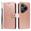 For Huawei Pura 80 Ultra PU Leather Cases Flower Pattern Wallet Stand Phone Cover with Strap