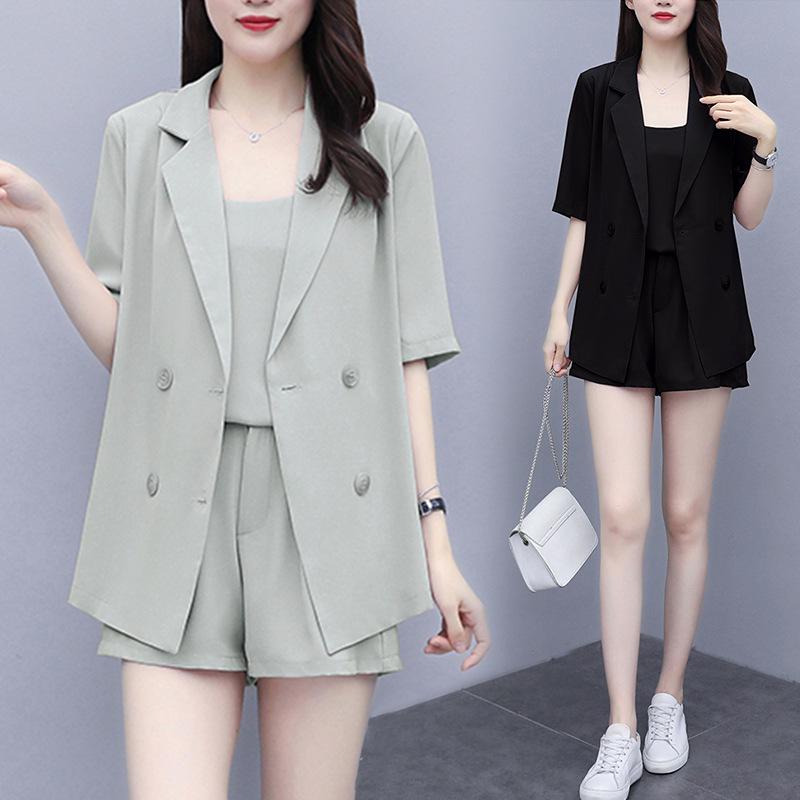 2024 Plus Size Summer Fashion 3-Piece Set: Stylish, Belly-Concealing Shorts Suit for Women