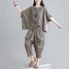 Embrace effortless summer style with this sportive set, featuring a short sleeve batwing top and cropped harem pants. The ensemble showcases a chic striped pattern and eye-catching patchwork and quilted detailing, adding a unique touch to your look. Crafted from a blend of premium cotton and linen, the set offers exceptional comfort and breathability, making it ideal for warm-weather adventures. Perfect for casual outings or a relaxed day at home, this set promises both style and comfort.